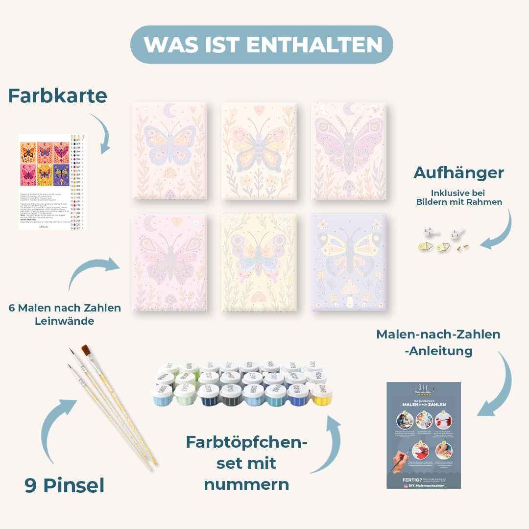 6 Mini Gemälde | Bunte Schmetterlinge Set Malen nach zahlen