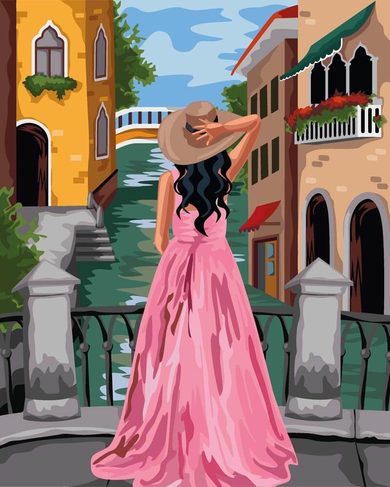 Malen nach Zahlen   Malen nach Zahlen   Auf der Brücke in Pink