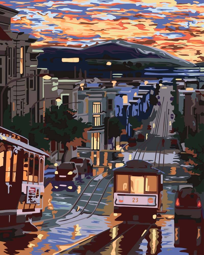 Malen nach Zahlen - Straßenbahn bei Nacht