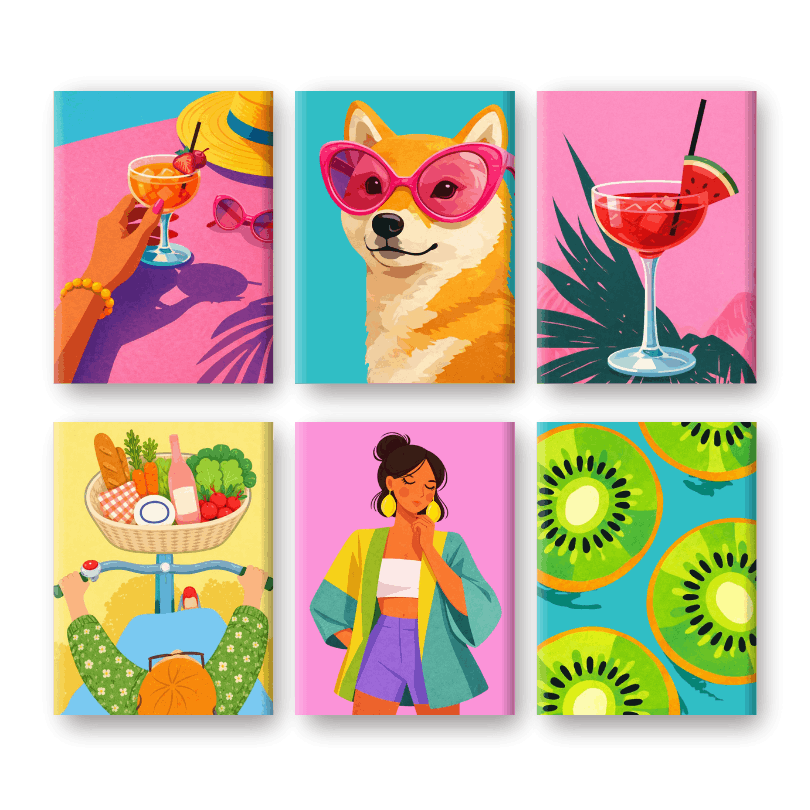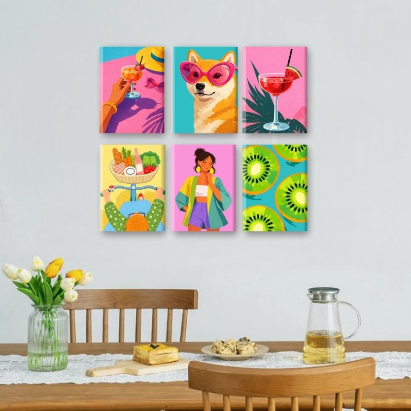 6 Mini Gemälde | Helles Sommer Set Malen nach zahlen