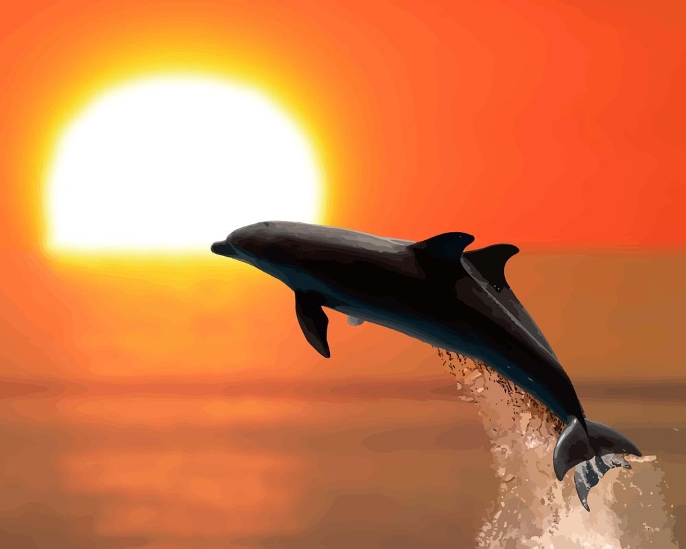 Malen nach Zahlen - Delphine bei Sonnenuntergang