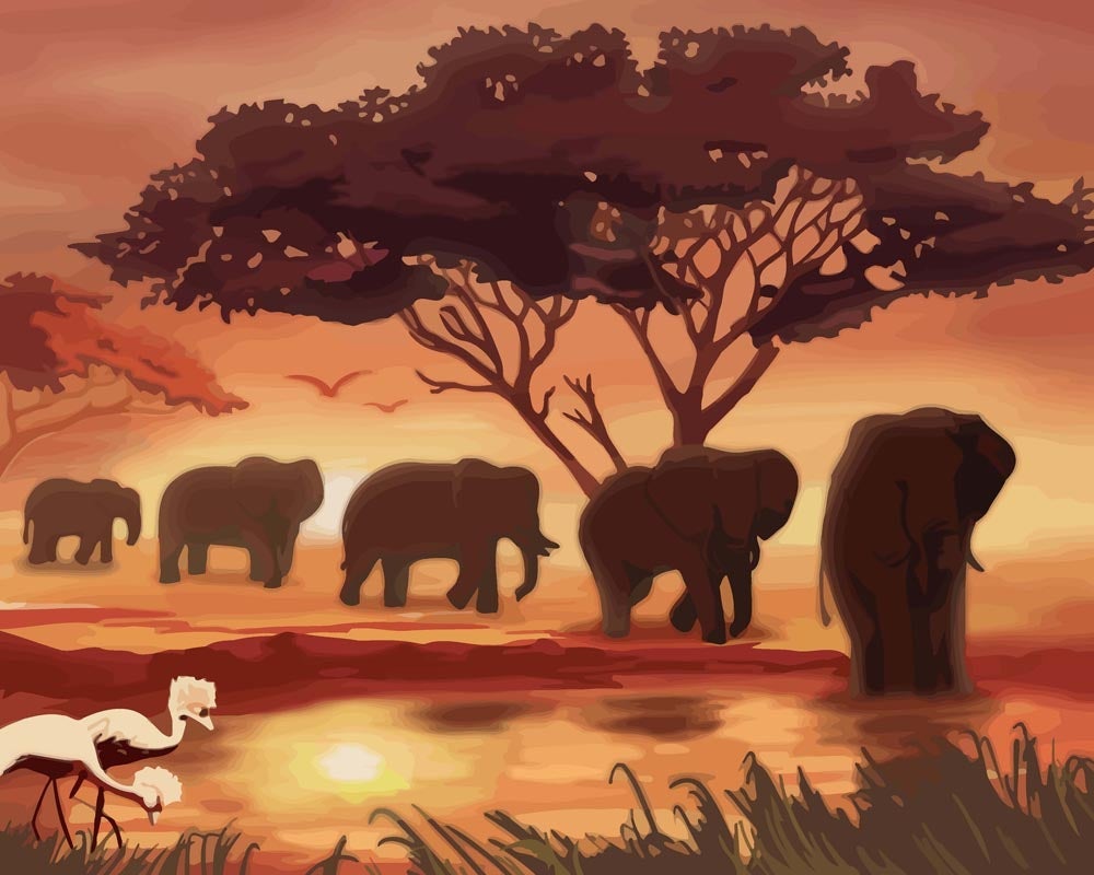 Malen nach Zahlen - Elefanten Karawane