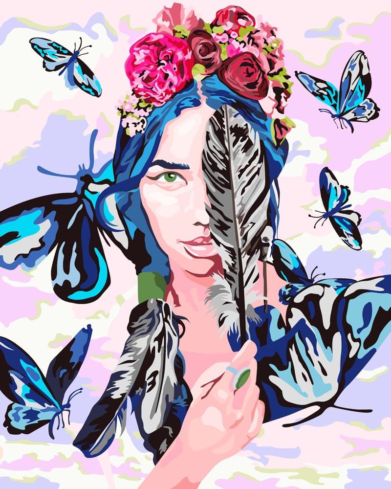 Unser "Malen nach Zahlen - Federfrau" Motiv lädt Dich auf eine kreative Entdeckungsreise ein. Du kannst Dich in aller Ruhe entspannen und den Malprozess genießen – wir liefern Dir alle passenden Malutensilien in einem rundum-sorglos DIY Set, sodass Du Dich allein auf die Kunst konzentrieren kannst.