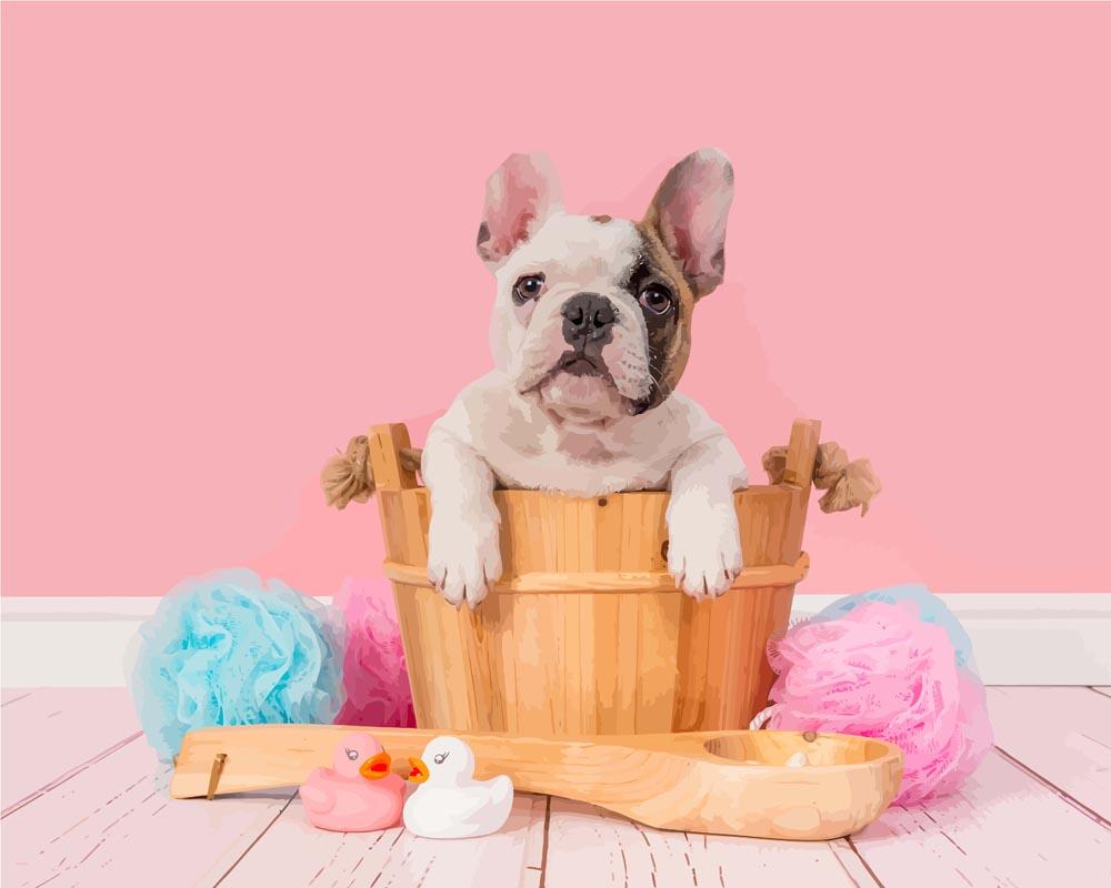 Malen nach Zahlen - Französische Bulldige am Baden