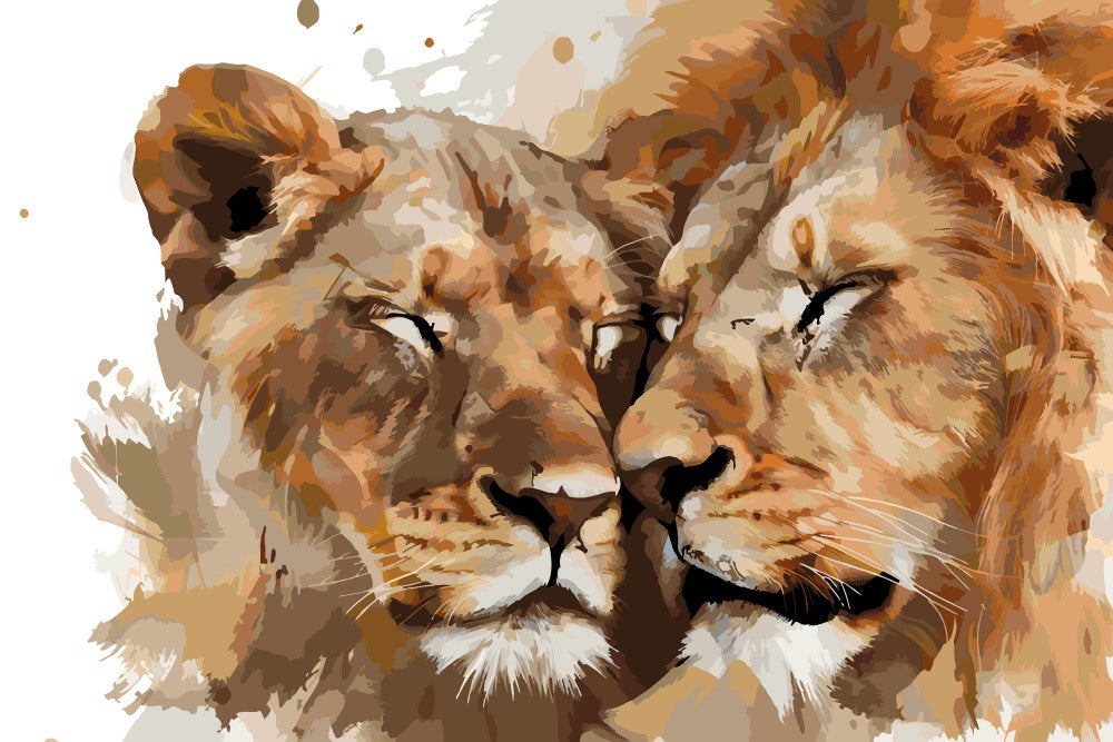 Malen nach Zahlen - Löwenpaar (Liebe) - Premium Painting