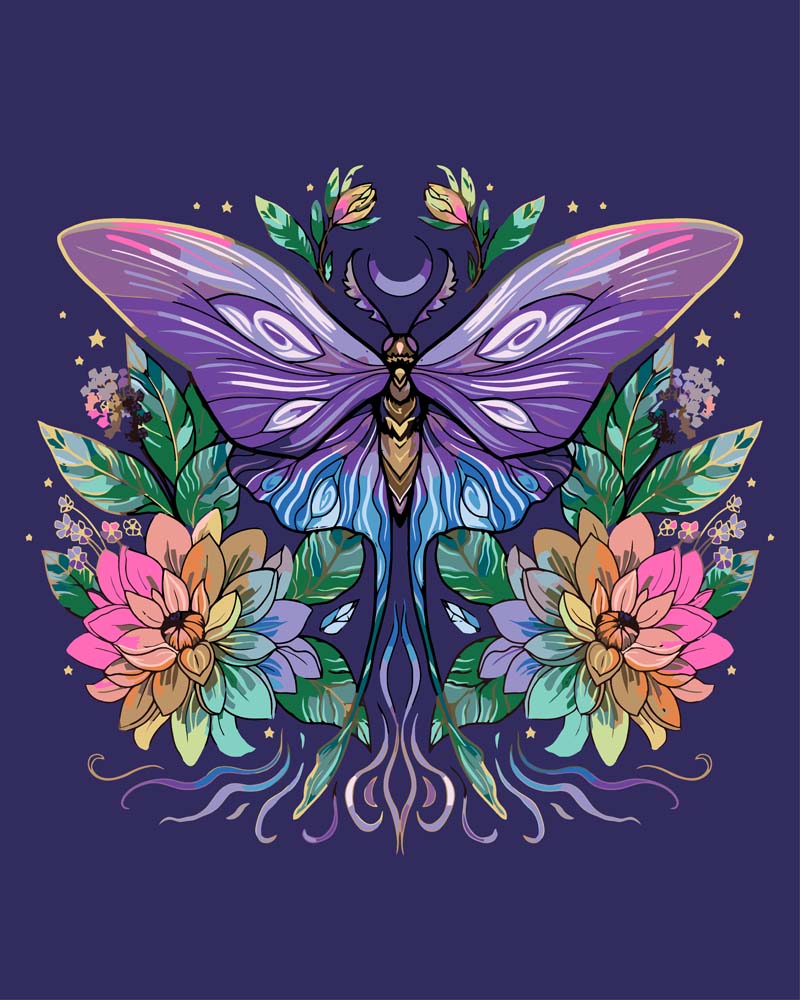 Malen nach Zahlen - Motte Lila - by Pixie Cold