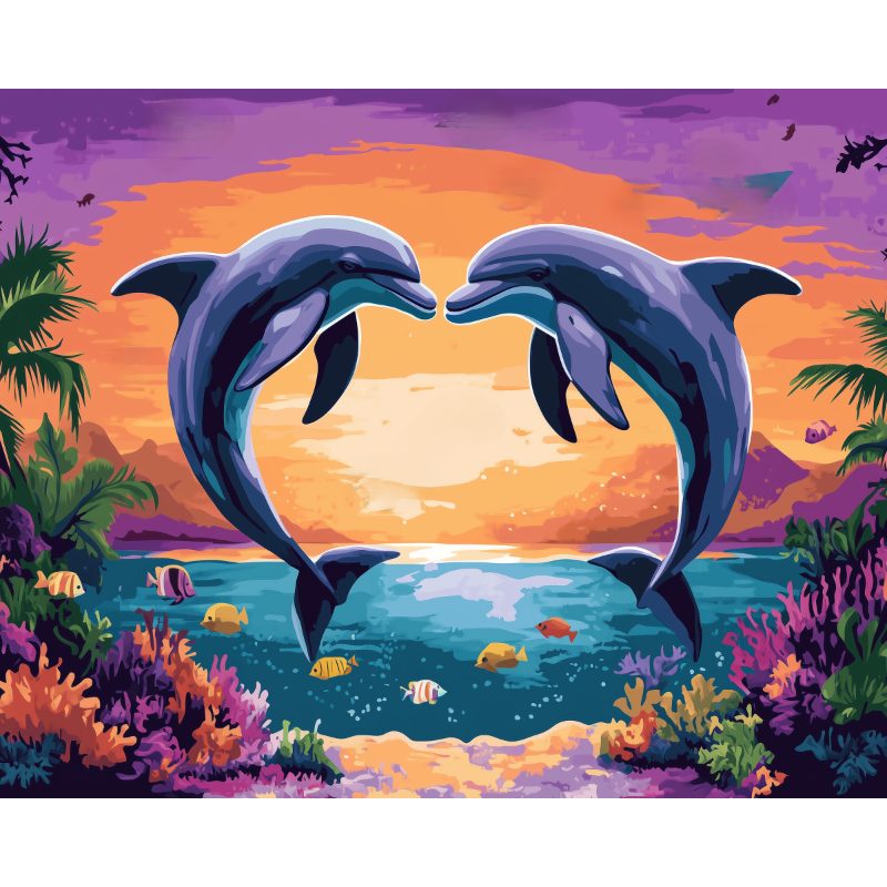 Dann sind unsere Malen nach Zahlen Sets genau das richtige für Dich! Lasse Deinen Gedanken freien Lauf und tauche ein in die vielfältige Welt der bunten Farben! Unser Motiv "Malen nach Zahlen - Verliebte Delfine" wird auch Dich künstlerisch bereichern und Dein Zuhause verschönern.