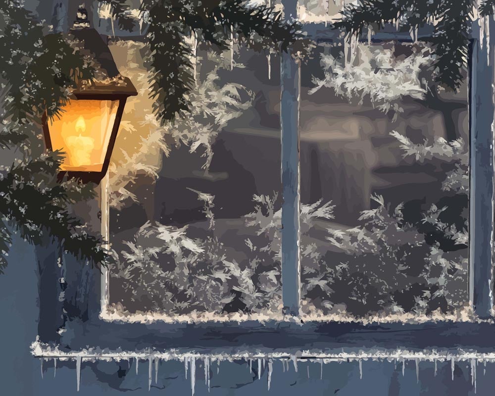 Malen nach Zahlen - Eiszapfen im Winterfenster