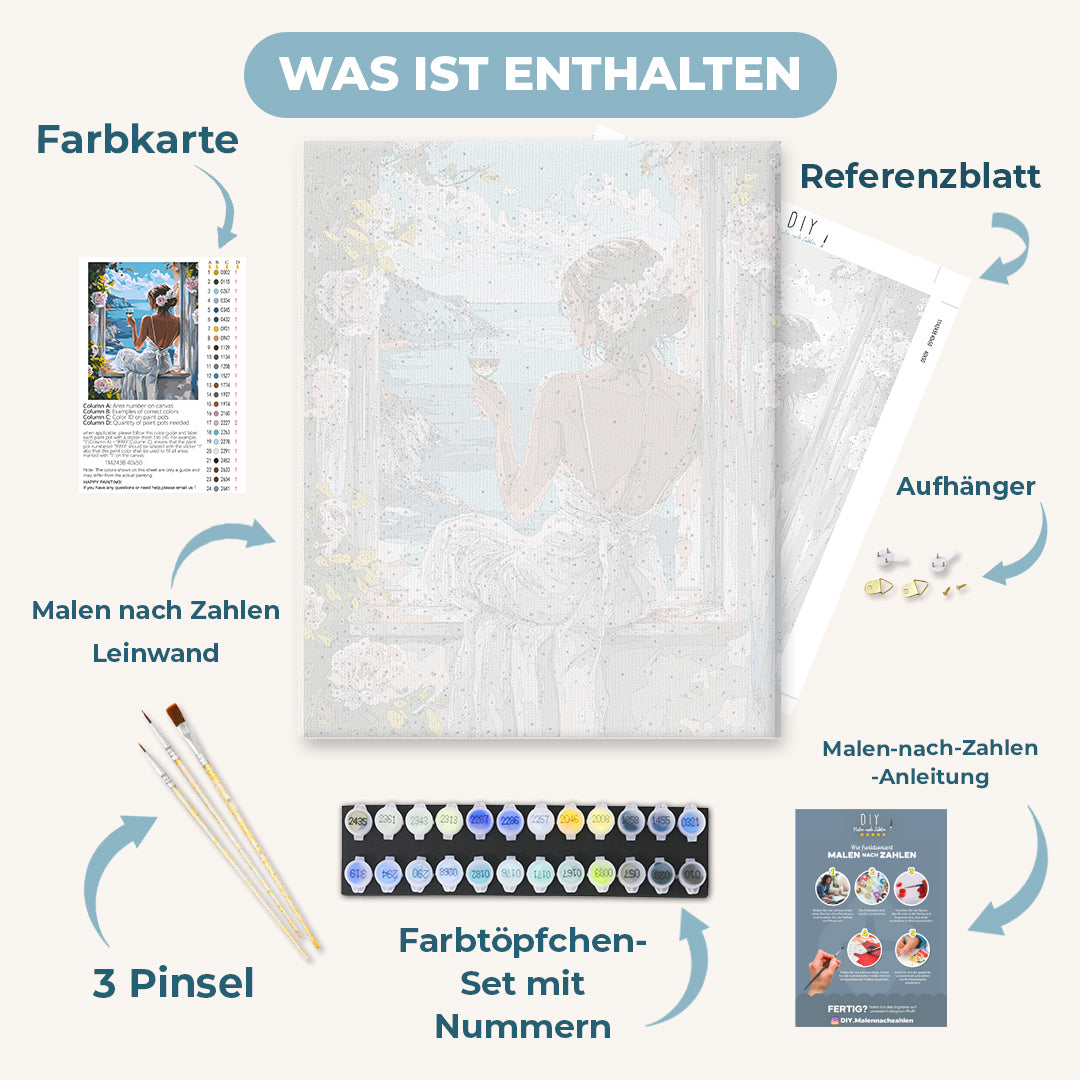 Unser "Malen nach Zahlen - Wein bei den Wellen" Motiv lädt Dich auf eine kreative Entdeckungsreise ein. Du kannst Dich in aller Ruhe entspannen und den Malprozess genießen – wir liefern Dir alle passenden Malutensilien in einem rundum-sorglos DIY Set, sodass Du Dich allein auf die Kunst konzentrieren kannst.