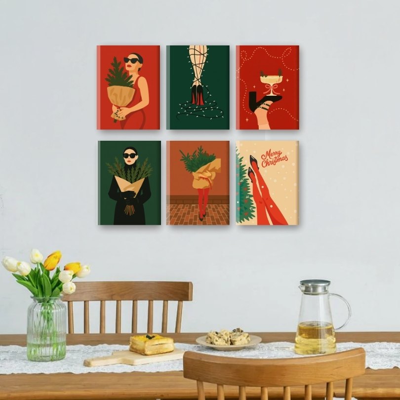6 Mini-Gemälde | Elegantes Weihnachts Set