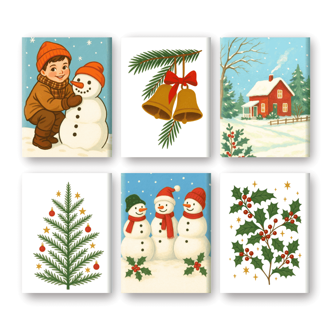 6 Mini-Gemälde | Weihnachtserinnerungen Set