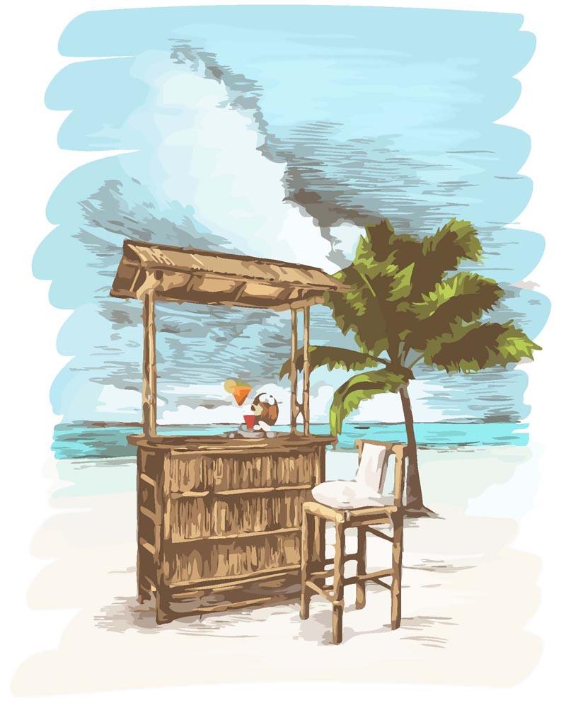 Malen nach Zahlen - Bambusbar am Strand