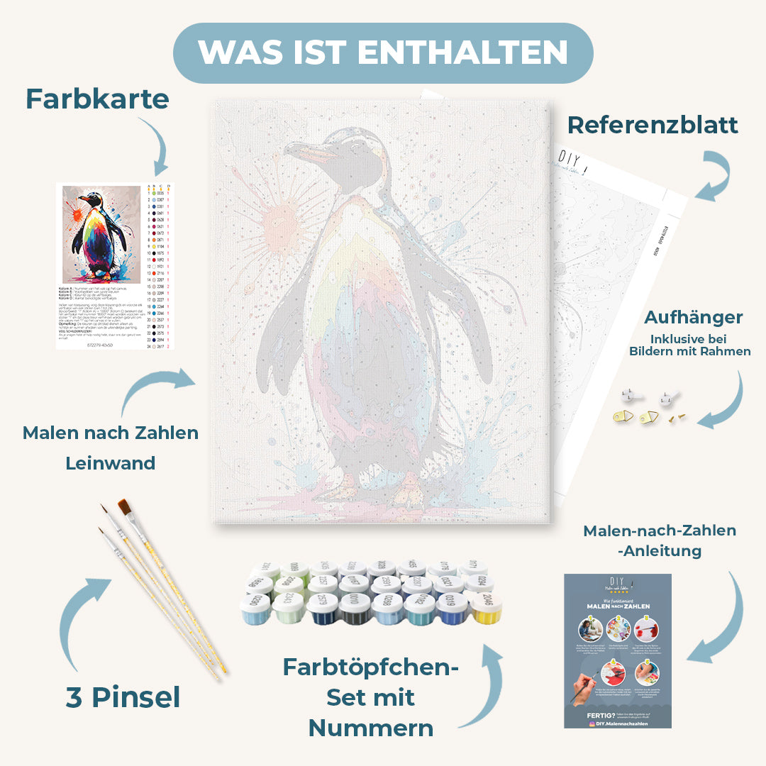 Noch nicht überzeugt? Wir sind stolz darauf, mit DIY Malen nach Zahlen bereits Tausenden von Kunden ein ganz einzigartiges Kunsterlebnis vermitteln zu dürfen. Unser "Malen nach Zahlen - Pinguin | Color Splash" Motiv lässt Dich für einige Stunden den Alltagsstress vergessen und in eine ganz neue Welt eintauchen.